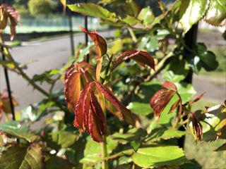 花壇のバラも枝葉を伸ばし、その先端に花芽をたくさんつけ始めました。開花はもう少しです。