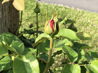 バラの花芽が大きく膨らんできました。開花は間近です。