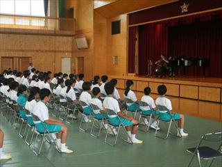 授業参観の前に、本校ALTの教師によるチェロと本校音楽教師によるピアノのミニコンサートを行いました。美しい音色にただただ聞き惚れました。