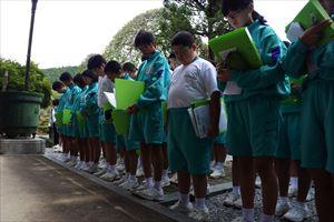 1年生では各地域の魅力を伝える「地域自慢」が始まりました。今日は永野の御嶽山神社、粕尾の常楽寺を訪れました。