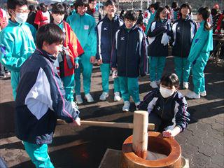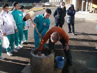 餅つきに慣れている生徒や手こずる生徒もいましたが楽しそうに取り組んでいました。