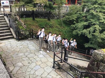改修された清水の舞台に立ち、高校入試突破最後の神頼みしつつも、音羽の滝では、恋愛成就の水でお清めをしていました。
