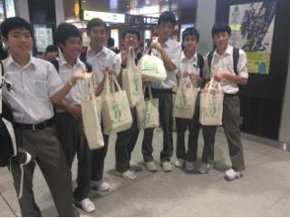 広島駅でお買い物。みんなエコバック持参です。粟野中は「エコ修学旅行」を実施しています。