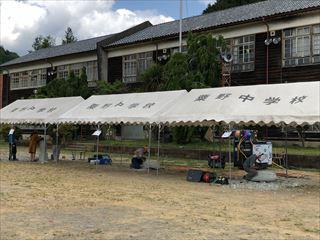 オープンスクールが始まりました。旧粟野中学校会場ではオープンセレモニーが大々的に行われました。多くの地域の方々が訪れ、オープンを祝い、展示物やアトラクションを楽しんでいきました。