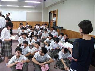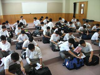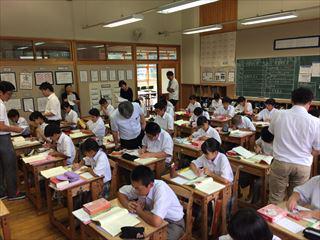 全教員が見守る中で、生徒たちは緊張しながらもしっかりとした態度で授業に臨んでいました。