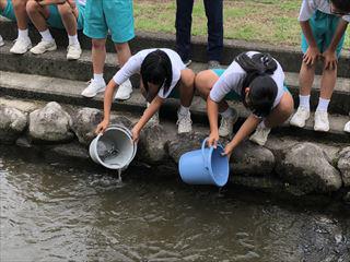アユが泳ぐ中学校は全国的にも粟中くらいでしょう。ぜひ、定着して大きく成長してほしいです。