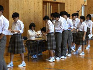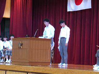 受賞伝達と生徒会の任命式が行われる
