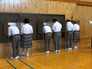 次に投票です。生徒会役員にふさわしい人を選び、一人一人投票しました。
