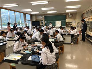 2年生の理科の授業で、発熱量の実験です。準備もしっかり行われ、落ち着いた態度で素晴らしい授業を展開しました。