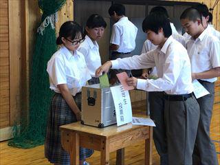 生徒会役員選挙の立会演説会が行われました。選挙管理委員長の挨拶後、1,2年生10名の立候補者と責任者による演説が有りました。どの候補者も粟中をよくしたいという熱意が伝わってきました。