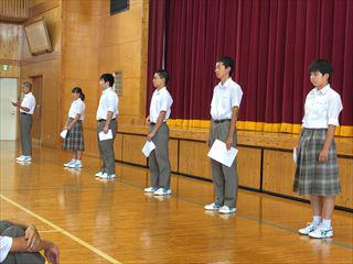 1学期の終業式が行われました。校長のあいさつの後、各が記念代表者による1学期の反省と2学期への抱負が発表されました。