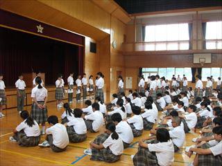 広島派遣生徒の挨拶の後、大きな声で校歌が歌われました。