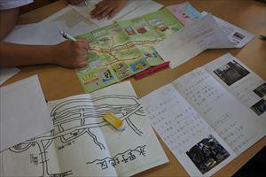 今学期から、1年生の総合的な学習の時間では、自分が住んでいる地域を紹介する「地域自慢」が始まりました。