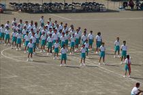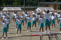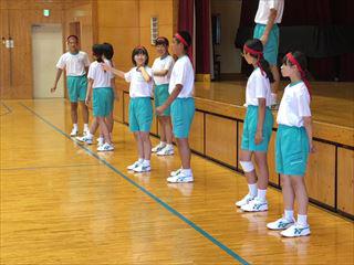 快晴の天気の中、運動会の予行が行われました。いよいよ運動会は明後日です。保護者や地域の方々に最高の演技を見てもらい、自分たちも心から喜び感動できる運動会にしたいと熱心に予行に取り組みました。