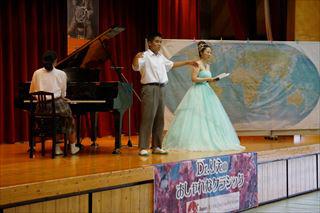 素晴らしいピアノ演奏と透き通るようなソプラノの歌声が体育館に響きました。