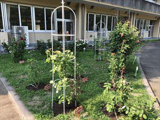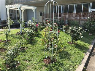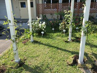 7月8日のバラ管理育成作業で植えた25本のバラの飾り付けを行いました。