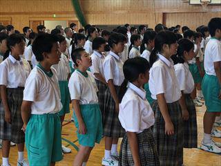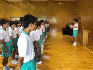 1学期の終業式が行われました。運動会や春季大会、オープンスクールなどさまざまな行事や日々の学習や部活動など、生徒たちはひとつひとつ全力で取り組み成長することができました。3名の各学年による生徒発表でも、今学期頑張れたこと、学年や学級として成長してきたことなどの意見が出されました。