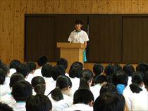 各クラス代表生徒による校内少年の主張大会が行われました。6名の代表は、自分の意見を堂々と発表することができました。どの発表も自分の経験や意見がよくまとめられ素晴らしい内容でした。