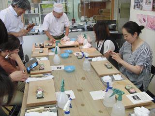 次に、山本総本店で和菓子作りに挑戦しました。皆さん素晴らしい和菓子を作ることができました。