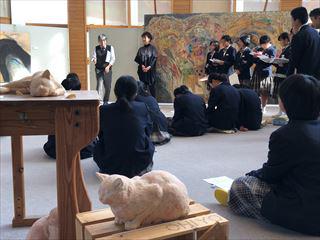生徒からは「物語を意識してつくっていて、そんな目で見てみると、今にも動き出しそうです」「作品は、何度も何度も見て感じてつくられていると分かりました」「ストーリー性があることにびっくりしました。見た目ではなくもっと考えを深めて発想を豊かにしたいと思いました」など感想を残しています。
