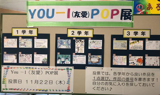 図書委員会が中心となって昨年度に引き続き「YOU-I POP展」が行われています。