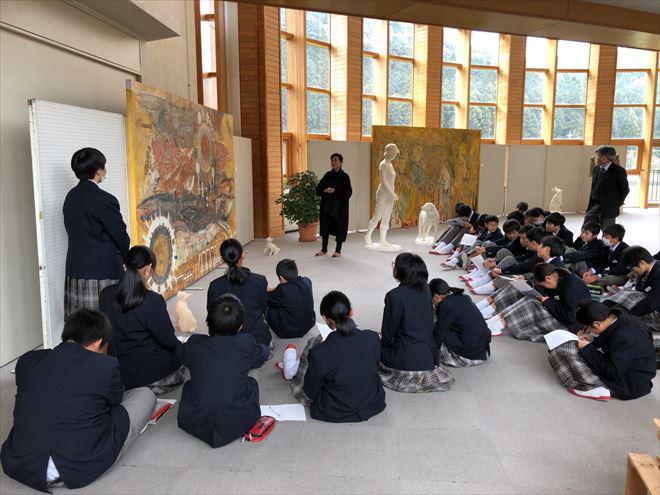 授業は生徒たちが作品を鑑賞し、感じたこと不思議に思ったことなどをメモし、作家に質問していく形で進められました。辻先生にはひとつひとつ丁寧に質問に答えていただきました。