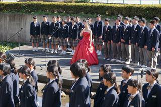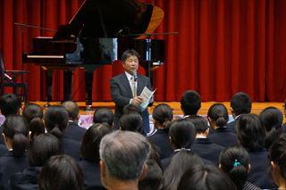 屋外ライブでは吹奏楽部の演奏、野口さんのピアノ演奏、生徒による合唱が行われました。