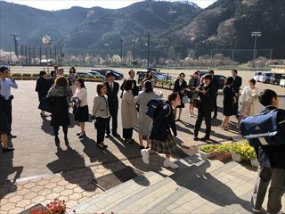 天候にも恵まれ、快晴のもと入学式を向かえることができました。朝、保護者と共に中学生としての初登校です。緊張そのものです。昇降口でクラス発表の掲示物を見て、教室に向かいました。