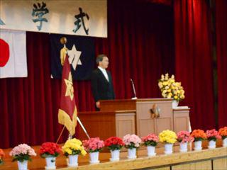 入学式の始まりです。緊張の中でも堂々とした態度で入場してきました。