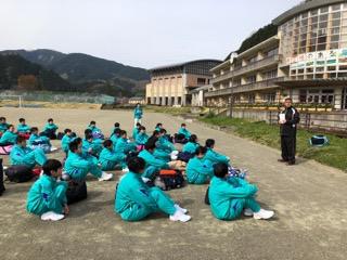 新入生も入学し、毎日の安全な登下校をするため、交通安全指導が行われました。全体の話の後、バス通学と自転車通学に分かれて指導が行われました。