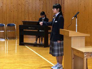 式は学校長の話、生徒代表2学期の反省、そして大きな声で校歌を斉唱しました。