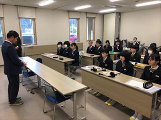次に市長講話を聞きました。粟野には日本を誇る麻やいちご、こんにゃく、木材などがあること、その素晴らしい文化を知り、ふるさとの良さを忘れず夢をもって羽ばたくようにとのお話をいただきました。