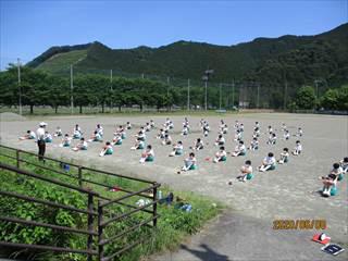 部活動もうがい手洗いを徹底し、ソーシャルディスタンスを取りながら活動を再開しています。活動後の手洗い、活動場所の除菌を徹底して行っています。