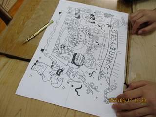 グループに配られた絵には、教室の外に貼ってある見本の絵と違う点が20カ所以上あります。それを以下のルールに従って協力して見つけ出すという活動です。