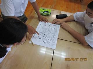 各自が持ち帰った情報を班の中で記録しながらいかにして効率よく進めるか作戦を練ります。知恵を絞り合い目的と役割が明確になっていきます。