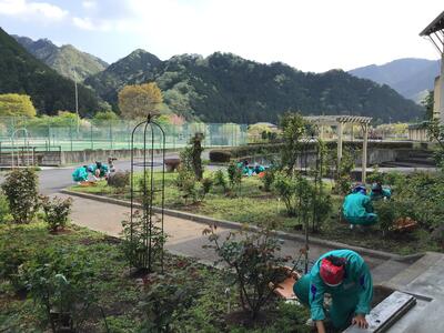 バラ園の雑草を取り除きました。肥料をたくさんあたえているので、雑草も元気に伸びています。生徒達は、5月のバラ園を楽しみに日々一生懸命に取り組んでいます。