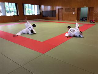 柔道部は女子2人男子5人で活動しています。柔道部は寝技、打ちこみ乱取りを主にやっています。夏の総体への意気込みは、自分から積極的に攻めて一つの技だけで終わらず、技のバリエーションを増やして自分のペースに持ち込んで試合をしたいと思います。そして、優勝して県大会に出場したいです。(柔道部長)