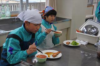 調理後の会食はみんな笑顔です。「おいしい」の声があちらこちらで聞こえました。