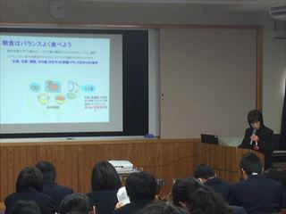 今日は、粟野共同調理場から久保先生に来ていただき、「成長期の食生活」という題で講話をいただきました。