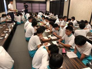 入浴を済ませ、一同に集まり、明日の自由行動の最終確認を行いました。多くを学び、充実した楽しく友情の深まる自由行動になって欲しいと思います。