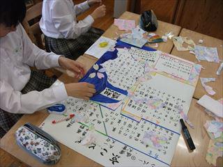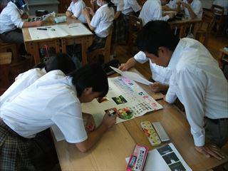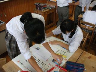 先週の総合から生徒たちは修学旅行で関心を持ったことや学んだことを模造紙にまとめています。