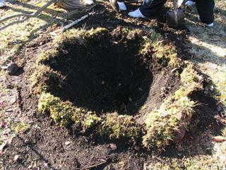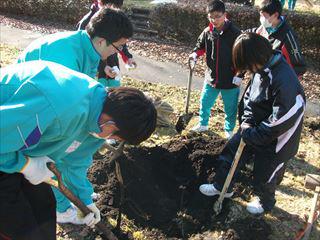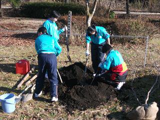 植樹担当の生徒たちは植樹チーフKくん指導のもと幅は1m、深さ50cmの穴を掘りました。