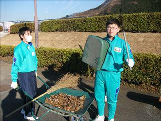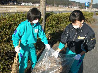 生徒たちは短い時間の間、運動公園の周りや駐車場にある落ち葉をかき集めていました。