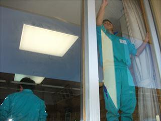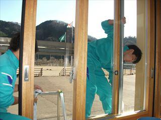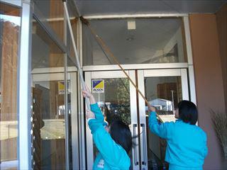 廊下側の高いところにある窓やドアのガラスだけでなく、