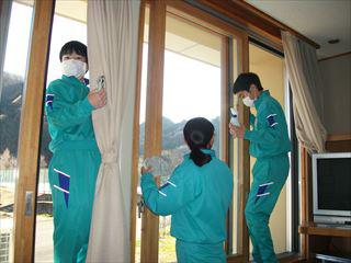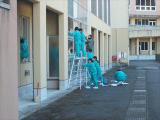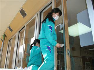こちらは校長室の窓をピカピカにすることを志願した少数精鋭のメンバーです。