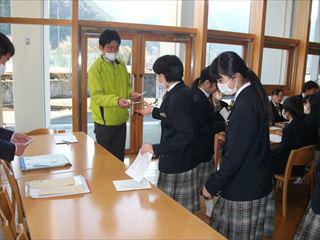 今日の学活では私立受験をする生徒に説明と受験票を渡しました。