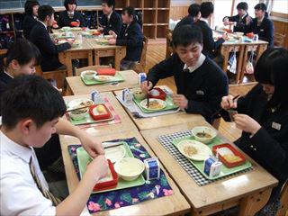 最後の給食を生徒たちは楽しそうに味わっていました。
