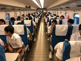 新幹線に乗車しました。遅い昼食をとった後は、トランプをしたりおしゃべりしたり最後の旅を楽しんでいます。