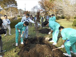 今日はロータリークラブさんの主催で、粟野運動公園の清掃活動と記念植樹を行いました。