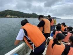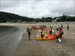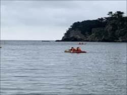 奥松島の海でクラス別にシーカヤックや刺網漁体験を行いました。